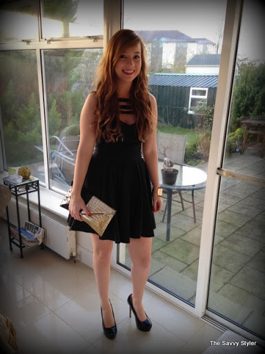 Yesterday I went to a wedding, the first one I have ever gone to around Christmas time and it was so nice despite the bitter cold. I found it difficult to find anything I really liked in the shops so I wore a dress I got for a ball about two years ago. It was a classic little black dress teamed with black and gold accessories. I love this dress, it’s a very flattering fit on and easy to wear for a long day as it isn’t restricting. What sets it apart from other black dresses is the neckline; I feel the strappy design really adds to this otherwise simple dress. When I bought it was about forty or fifty euro and I got it from Asos. I decided to go for patent black high heels and a black and gold clutch bag. I really love this clutch, it is quite unusual in its design, I got it a couple of years ago in a charity shop for only €15! It was such a bargain because I have worn it with lots of different outfits. To match in with my bag I wore a gold cuff bracelet with a leather trim design and some simple dangly gold earrings. To add a bit of festiveness to the outfit I added a red lip and off I tottered to the Church!