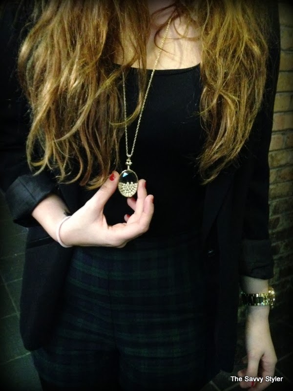 Anyways, on to my outfit, I was in a rush getting ready so I just threw on my moss green tartan shorts that I got over the Christmas in the sales. These shorts are from New Look and are really convenient if you are in a rush and don’t know what to wear. Teamed here with the black I feel they look quite classical and add a sophisticate edge to the outfit. They are also right on trend as tartan seems to be staying with us for the spring, so you can’t go wrong!