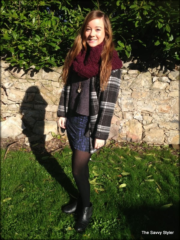 It’s still quite cold out even though the sun is shining, so I wore this with my tartan coat that I picked up in the Penneys/Primark sale or a bargain of €15! This is such a great coat; I wear it everywhere as it is a nice change from my heavier winter ones. My boots are just a simple black Chelsea style also from Penneys/Primark and my snood is from Dunnes Stores. Below I have compiled a collage of similar items to what I am wearing if you wanted to recreate the look. I couldn’t find my exact pieces as they are a couple of years old, but these are really nice too and very good value!