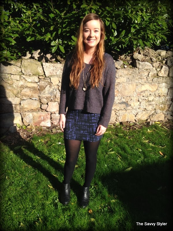 This is an outfit that I wore last week in college, it’s pretty plain but I really like it! My jumper and dress are both from H&M and are a couple of years old. I actually forgot I owned this print bodycon dress because I haven’t worn it in what feels like forever! It’s just a basic bodycon dress with a nice dark blue and black graffiti style print running through it. To give it a casual feel, I threw this charcoal grey cropped jumper over it and accessorised with my beloved gold and pearl necklace. I wear this jumper with everything, it’s so versatile! It looks great with high waist shorts or jeans, skater style skirts and dresses or like I have here, layered over a simple bodycon dress.