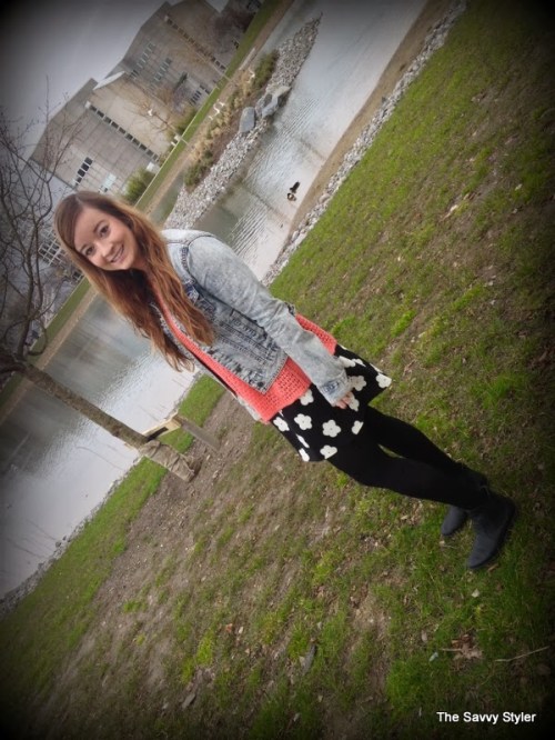 For my second look, I went for a more girly summery look by teaming this jumper with my monochrome dress and denim jacket. Would you believe that nearly everything I am wearing here is Penneys! The jumper, dress, jacket and shoes! I also got this dress last week when I was in town. It has a really nice fit and a great over-sized monochrome floral pattern. The material is really nice and doesn’t feel like Penneys at all! I got my acid washed denim jacket at the start of last summer, but I am sure that Penneys will have similar ones coming in the store soon.
