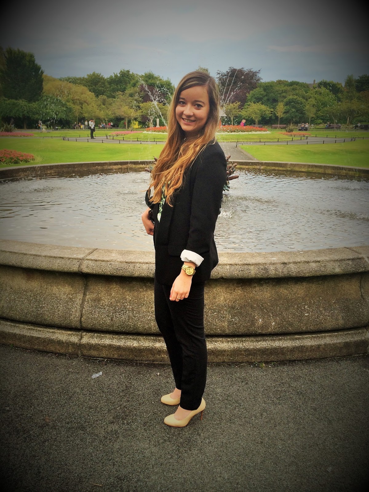 At the moment I am still trying to build a ‘capsule wardrobe’ of staple work wear pieces that I can mix match for whatever mood I am in. But here, I have just paired a plain black pair of suit trousers with a patterned top, black blazer and nude heels. Usually people are under the impression that work clothes can be quite expensive, but I picked up all these pieces at quite reasonable prices, the most expensive item was my blazer and that was only €40 from Dorothy Perkins. My suit trousers are also from Dorothy Perkins and set me back about €15 in the sale. Actually now that I think about it, everything I am wearing I picked up in the sale bar my blazer and handbag (my beloved Michael Kors).