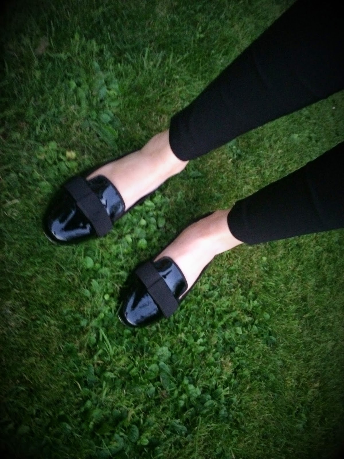 Seeing that the blouse speaks for itself I decided to stick with the monochrome style and pair it with plain black trousers and black flats. I got these trousers in New Look a while back and they are a great basic work item. Although I would advise to size down as these are quite a stretchy material and can be a bit big after a couple of wears! I am absolutely in love with these patent flats! I got them last week in H & M and I am convinced that they will be my staple shoe for the autumn/winter season. They will go with just about everything from jeans to dresses. And what’s even better the bow detail makes them stand out from the other similar style patent flats on the high street at the moment! Plus they only set me back €25.