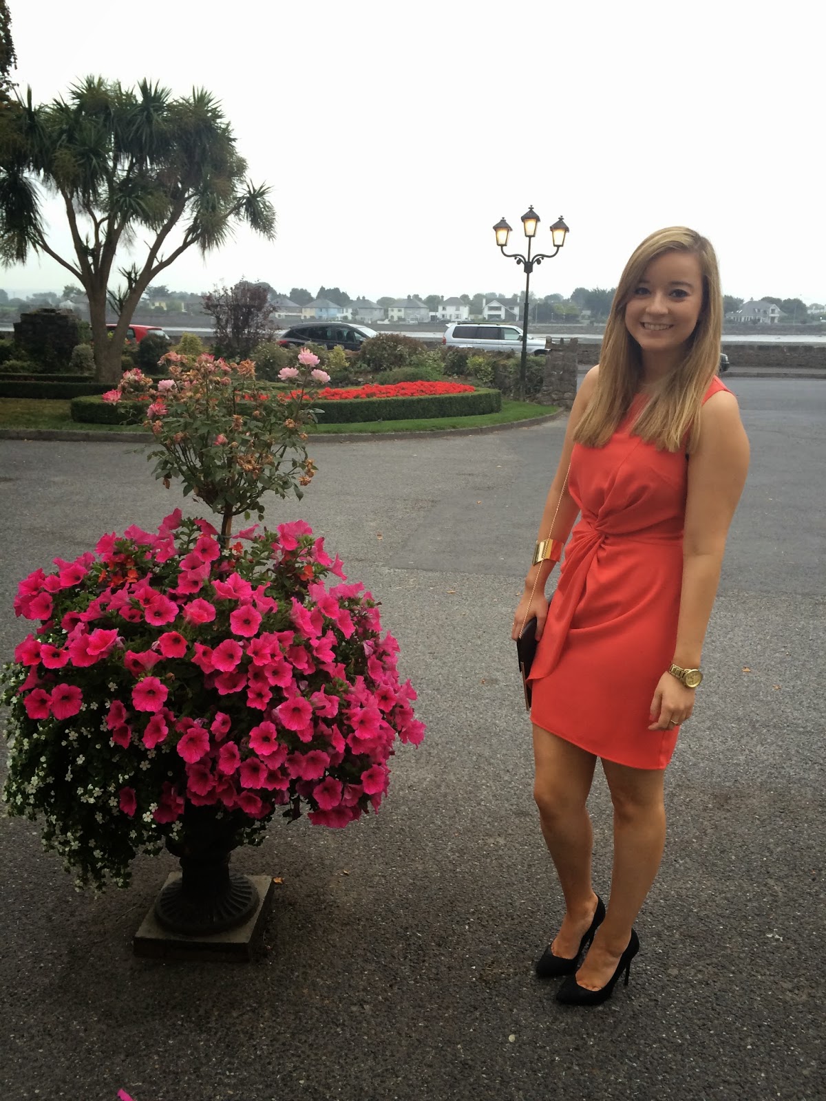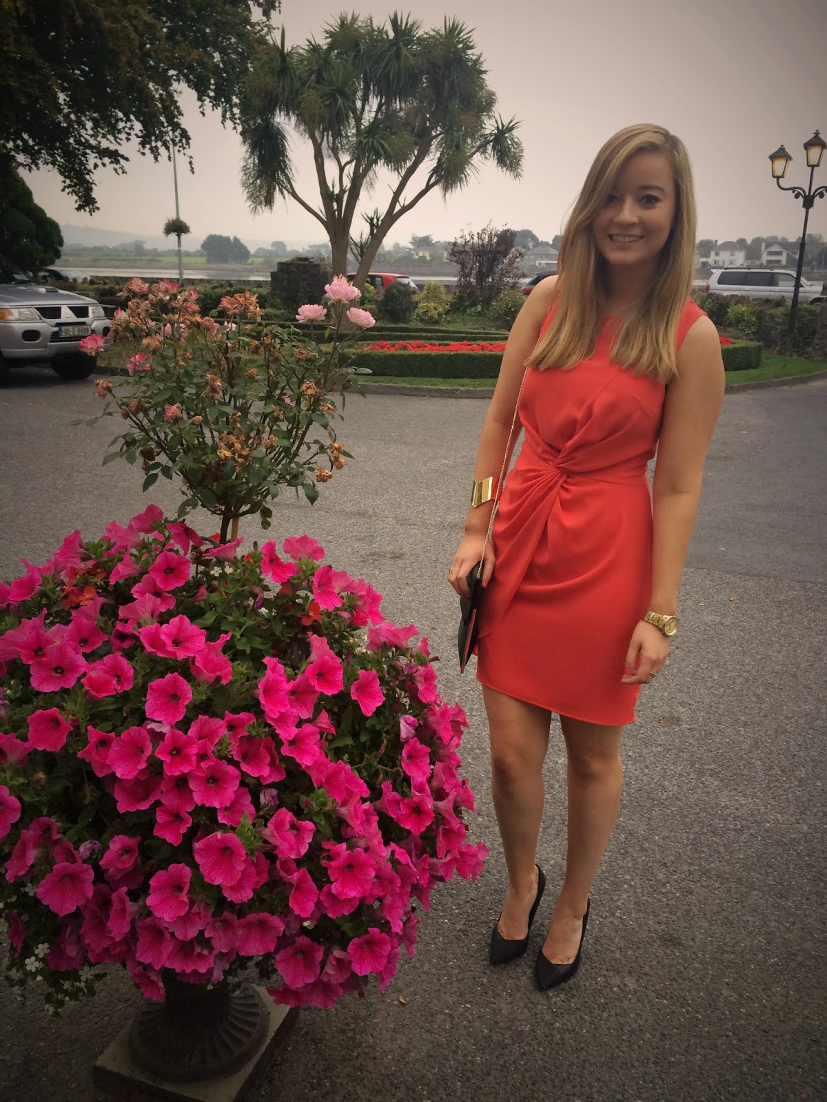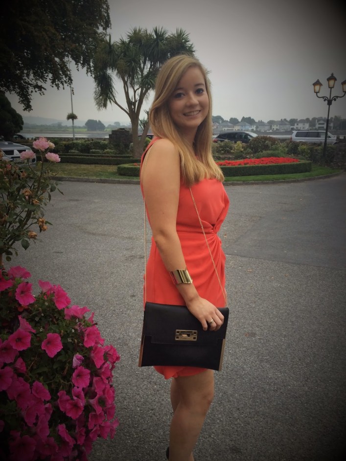 Last weekend I was at my cousin’s wedding down in Waterford. It was such a lovely day as it was on a Friday and this allowed me to take an extra-long weekend off work. Initially I was humming and hawing over three dresses. But in the end I opted for this coral dress from Oasis. Usually I don’t buy much in Oasis as I find it quite expensive and hard to justify for my budget. But I luckily found this dress in the sale for only €19! I couldn’t believe the price tag when I saw it, especially seeing it was reduced from around €70!