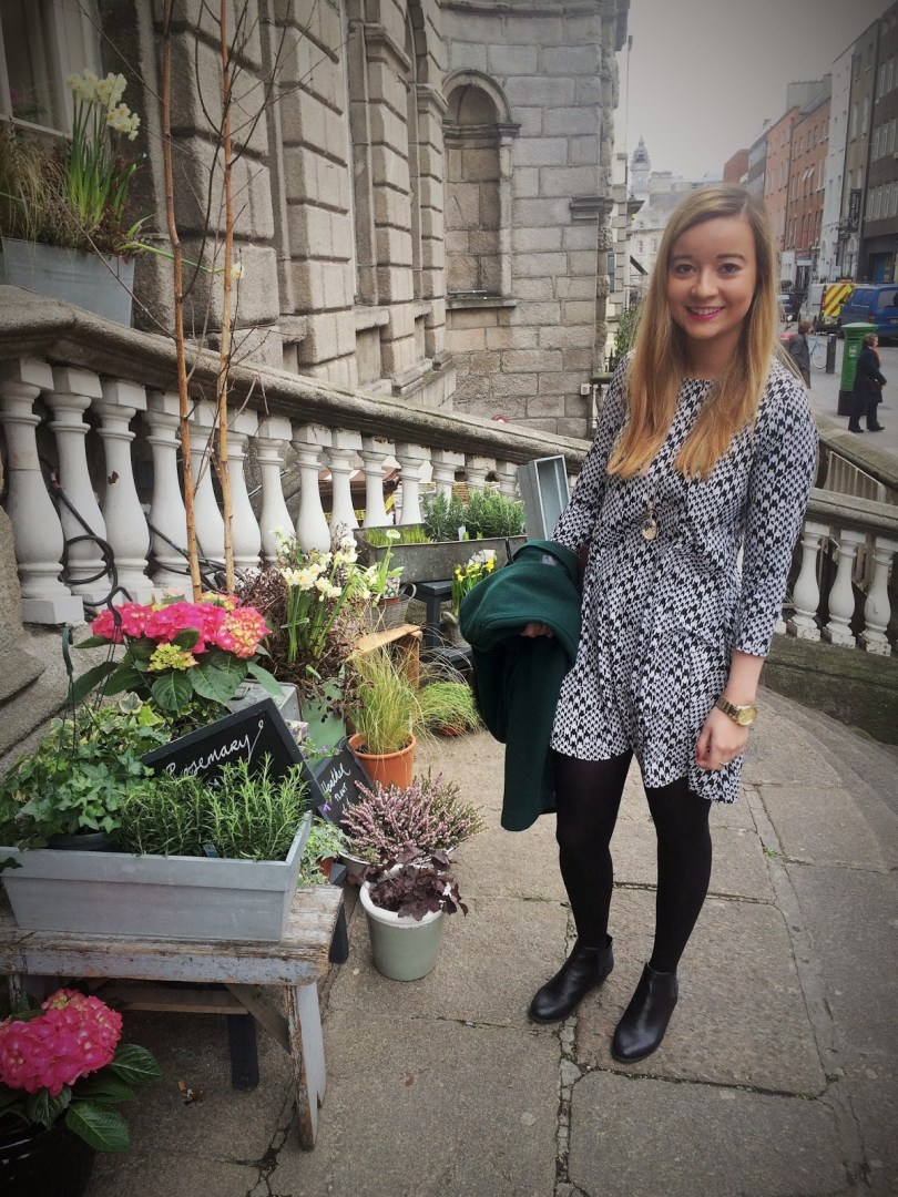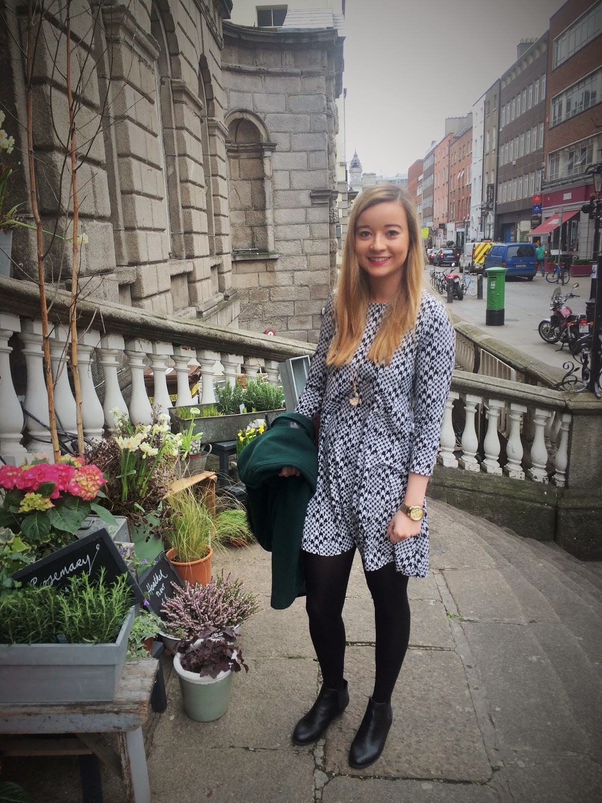 Today I have an outfit post featuring this gorgeous dress from New Look. I wore this last weekend while shopping in town with a friend. I actually picked up this dress back in October last year but haven’t had a chance to do an outfit post on it. The dress was only around €17 and can easily be dressed up or down depending on what you are doing. Here, I have paired it with a simple pair of flat black Chelsea boots that I picked up after Christmas in Miss Selfridge. I had been on the lookout for a nice pair of flat boots and found them impossible to find, everything seems to have some sort of heel! These are extremely comfortable and great value at only €35.99.
