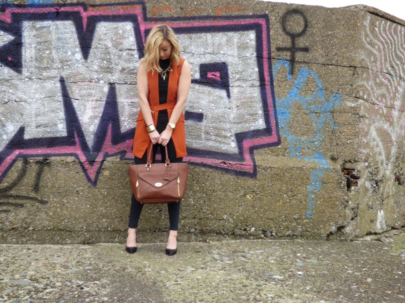 Similar to my other two looks this outfit is keeping within my overall theme of industrial lines with a subtle softness and a pop of colour. For all of my looks I have teamed basics with a hint of colour. Here, my focal point is this burnt orange waistcoat from Penney and its in stores at the moment. This top is also from Penneys and I featured it in the second look I created for my assignment, if you missed it you can check that out here (both looks are quite different so it might give you some styling ideas). These jeans are ripped high waist Joni jeans from Topshop and my shoes are from Zara.